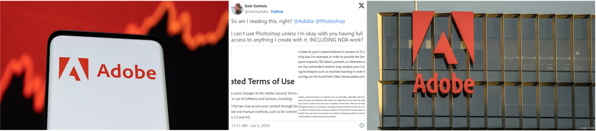 The global computer software company Adobe, headquartered in California, is under fire after its revised terms of use incited backlash from creatives. Users took to social media to share their shock that the company can now access and use their work, even under non-disclosure agreements (NDAs). The terms allow Adobe to use customer content for purposes like training its AI image generator, Firefly. Despite reassurances from Adobe’s chief product officer that customer data isn’t used for AI training, many users are distressed about privacy and intellectual property issues.